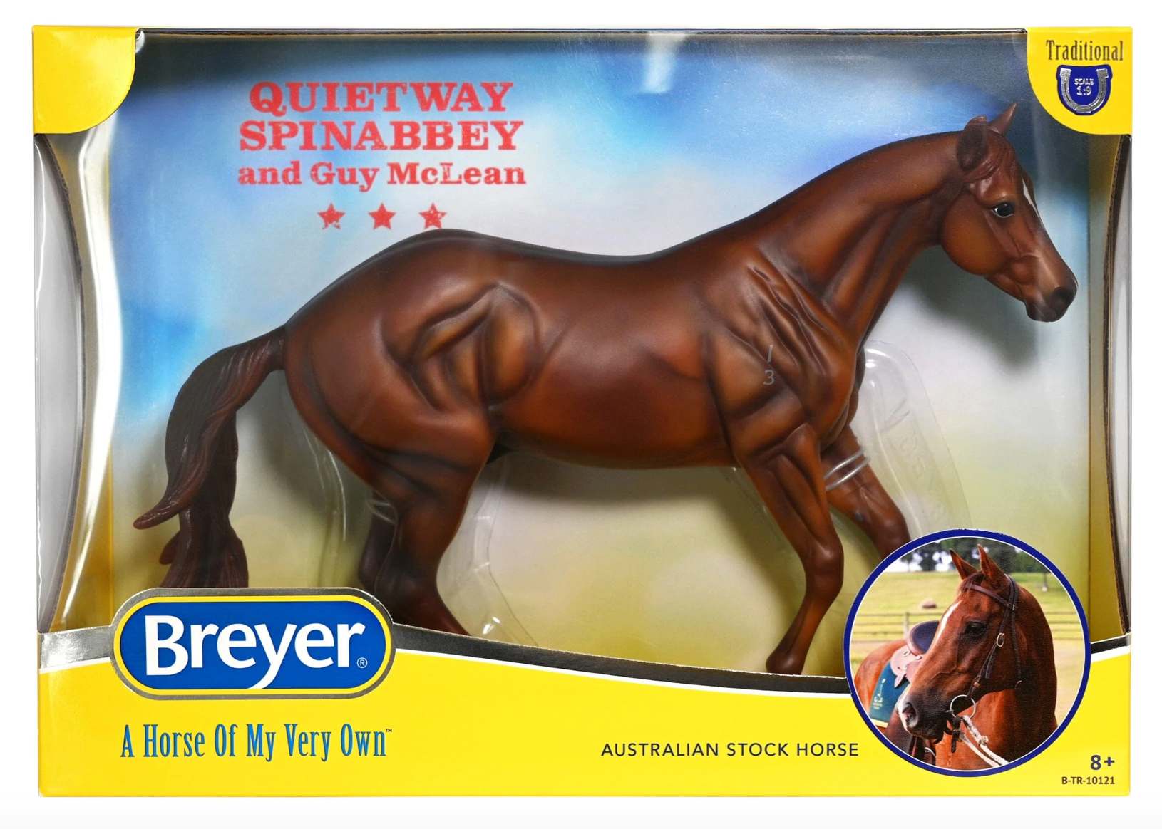 Guy’s longtime Australian Stockhorse, Quietway Spinabbey, is known for awe-inspiring maneuvers such as the canter backwards and the gallop sideways.