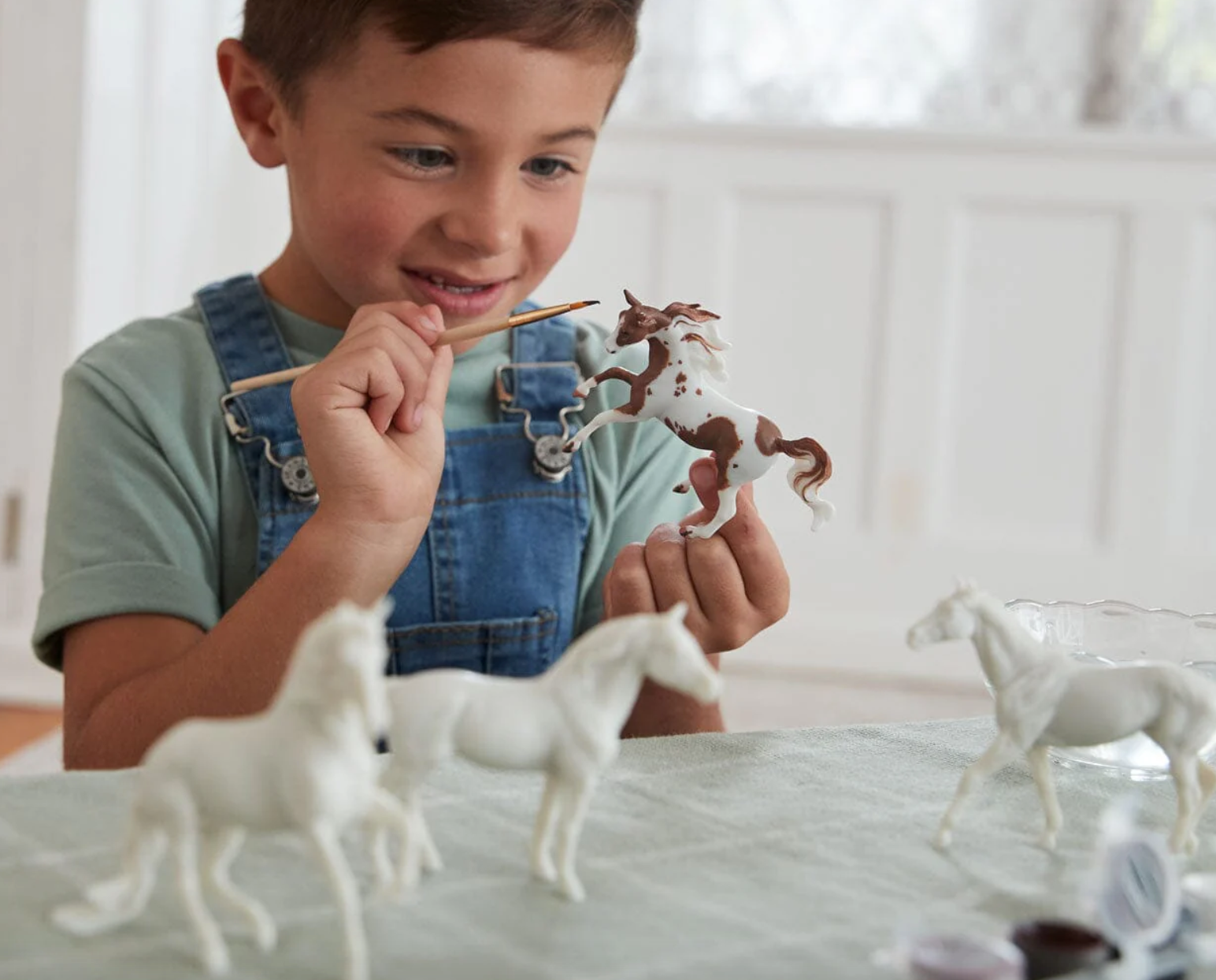 Breyer fans love painting horses! Whether you are a beginner or an experienced painter, the possibilities are endless. Horses come in all sorts of colors and patterns, and these horses come with a bonus feature: they glow in the dark! Let your imagination gallop and create luminous works of art that not only look amazing in the day but also at night!