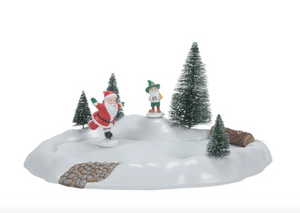 As we can see the elf has rated Santa's moves a perfect 10! If he wasn't so busy being Santa, he could go to the Olympics! This animated piece will tuck into small spaces on any village display!