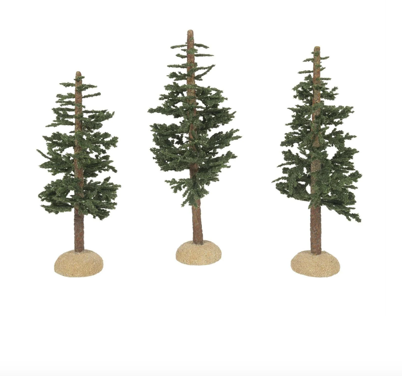 One of the most widespread pines spanning the Midwest to the Southwest, these new Ponderosa Pines feature sand bases and no snow, offering versatility for your Village displays. Set of 3.